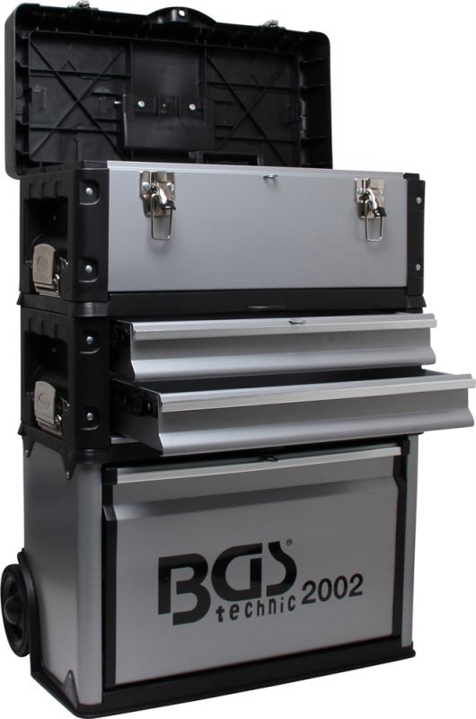 Montagewagen von BGS technic ist ein leichtgängiger Werkzeugtrolley mit 2″ Rollen und drei abnehmbaren Werkzeugboxen. Der ideale Montagewagen für Montagearbeiter, Mechaniker, Elektriker oder den Hobby Fahrrad Schrauber.