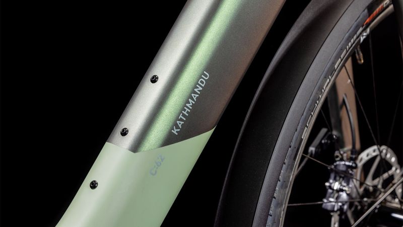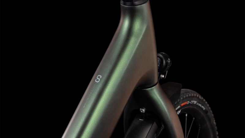 Der Tiefeinsteigerrahmen des Kathmandu Hybrid C:62 SLT 400 ist nicht nur superelegant und supereinfach im Handling, sondern auch extrem raffiniert konstruiert und flexibel anpassbar. Das bewährte C:62® Carbon sorgt dabei für die perfekte Mischung aus Stabilität und geringem Gewicht. Außerdem hat Cube einen 400 Wh starken Bosch Akku verbaut, der sich ästhetisch ins Rahmendesign einfügt und dort zuverlässig vor Nässe und Schmutz geschützt ist. Die im Inneren verlaufenden Züge und der formschöne integrierte Gepäckträger IC 3.0 als stabile, vielseitige Transportplattform für sämtliches Hab und Gut unterstreichen den cleanen Look. Ein agiles, präzises Lenkverhalten ist das Spezialgebiet der Vollcarbongabel. Und für das stabile Handling, selbst bei voller Beladung, sind die Boost Steckachsen an Front und Heck verantwortlich. Dazu kommt ein beinahe unzerstörbares UDH Schaltauge. Keine Frage, Cube hat an alles gedacht, was wichtig ist!