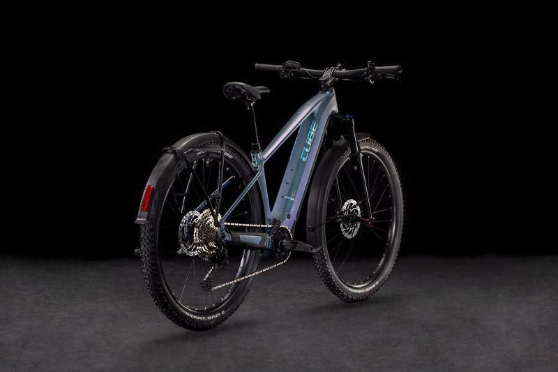 Der Rahmen des Reaction Hybrid Allroad steckt voller cleverer Features – und damit meint Cube nicht nur die integrierten Schutzbleche, den Gepäckträger, die Beleuchtung und den Seitenständer. Sein starker PowerTube Akku und der Bosch CX Motor sind so formschön, sauber und sicher ins schlanke, elegante Design integriert, dass sie kaum auffallen. Außerdem ist das Chassis PowerMore-ready, das heißt, es können bei Bedarf weitere 250 Wh mitfahren. Dazu betonen die integrierte Sattelklemmung und die interne Zugverlegung die cleane Optik. Was noch? Ein UDH für einfache Ersatzteilverfügbarkeit, eine Aufnahme für die Kettenführung und die Möglichkeit, ACID Schutzbleche nachzurüsten. Last but not least bietet Cube dank des Size Split Systems für nahezu jeden Fahrer die perfekte Passform.. Fazit: Alles da, was wichtig ist – für maximalen Fahrspaß!