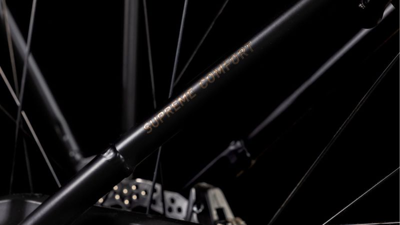 Schlicht, elegant, praktisch und sicher: So lässt sich der Supreme Hybrid Rahmen wohl am besten beschreiben. Dank PowerTube Design fügt sich der Bosch 625 Wh Akku formschön ein, was für einen schlanken, harmonischen Look sorgt. Auch der Bosch Active Plus Motor verschwindet praktisch unbemerkt im Rahmen. Zudem macht dieser Tiefeinsteiger seinem Namen alle Ehre und ermöglicht bequemes und schnelles Auf- und Absitzen. Zugunsten erstklassiger Lenkpräzision und einfachem, intuitivem Handling hat CUBE sich für ein superstabiles und sicheres konifiziertes Steuerrohr entschieden. Der Rahmen wurde speziell für die Verwendung mit einer wartungsarmen Nabenschaltung konzipiert und inkludiert einen semi-integrierten Gepäckträger. Doch praktisch ist nicht alles – für eine durch und durch authentische, elegante Optik kam das Smooth Welding Verfahren zum Einsatz. Übrigens ist das Chassis in vielen verschiedenen Größen von 42 bis 58 cm verfügbar – so findest du garantiert die richtige Passform für dich.
